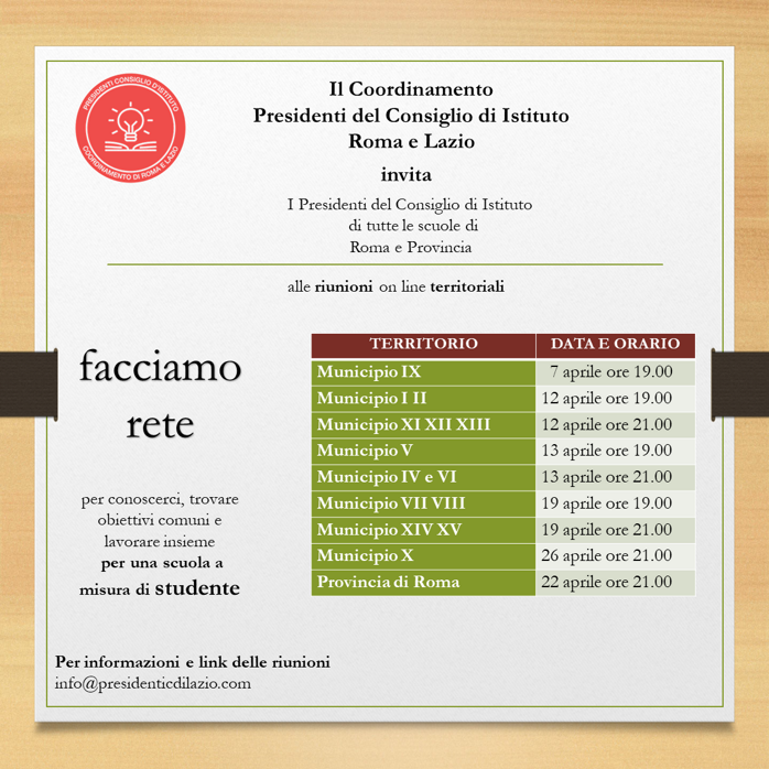La zona di Coordinamento di Roma comprende moltissime scuole, per questo motivo ha sempre avuto due Referenti, uno per gli IS e uno per gli IC, che collaborano attivamente per promuovere la formazione di reti sinergiche tra i diversi istituti, portare avanti tematiche comuni, favorire scambi e collaborazioni.